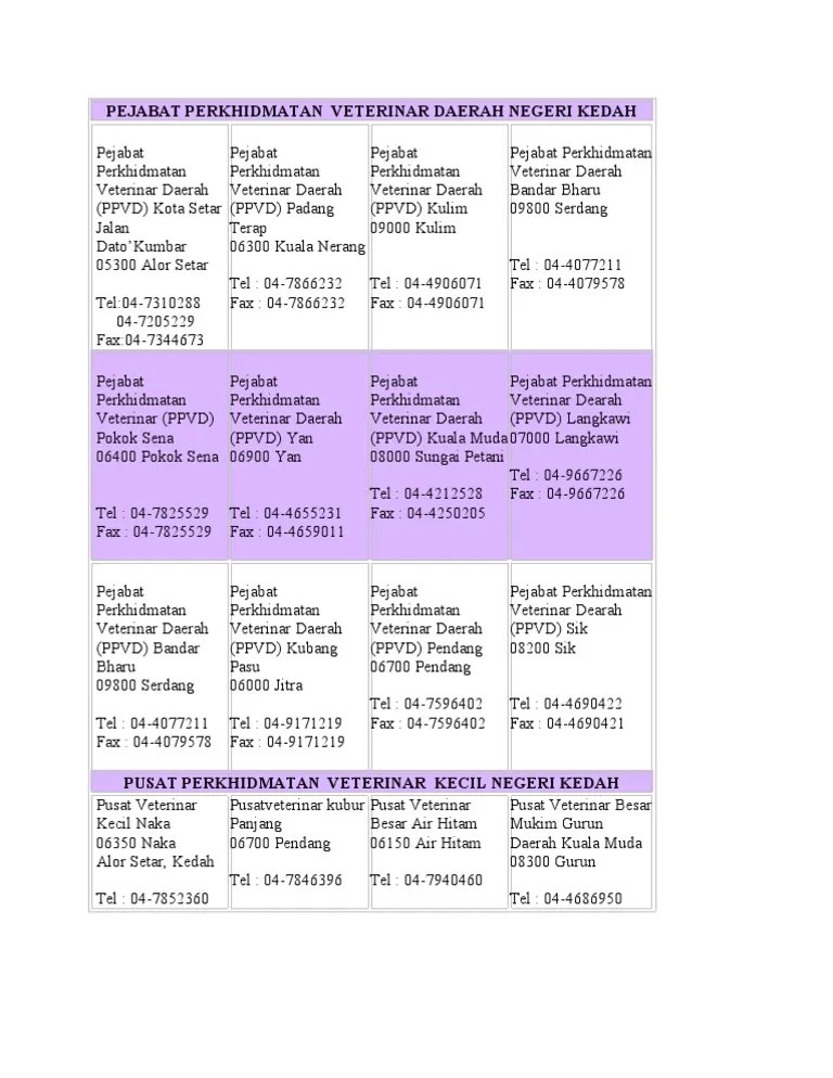 Name, pejabat tanah dan daerah kuala muda. Pejabat perkhidmatan veterinar daerah kuala muda.